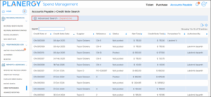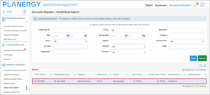 - Navigate to Accounts Payable > REPORTS & SEARCHES > CREDIT NOTE SEARCH.