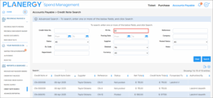 The Accounts Payable > Credit Note Search page is displayed.- Press Advanced Search.