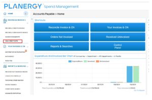 - Expenditure and Invoiced Bar Chart Report – The Expenditure and Invoice Bar Chart Report gives a detailed report on the invoiced status of orders by the month. You can view the total expenditure value, value already invoiced, and remaining non-invoiced values for the past 12 months based on company, department, cost code, supplier, item, user, and location.