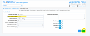 Add the configuration for the custom field ensuring ‘Custom Field Location’ is set to Supplier and press Save: